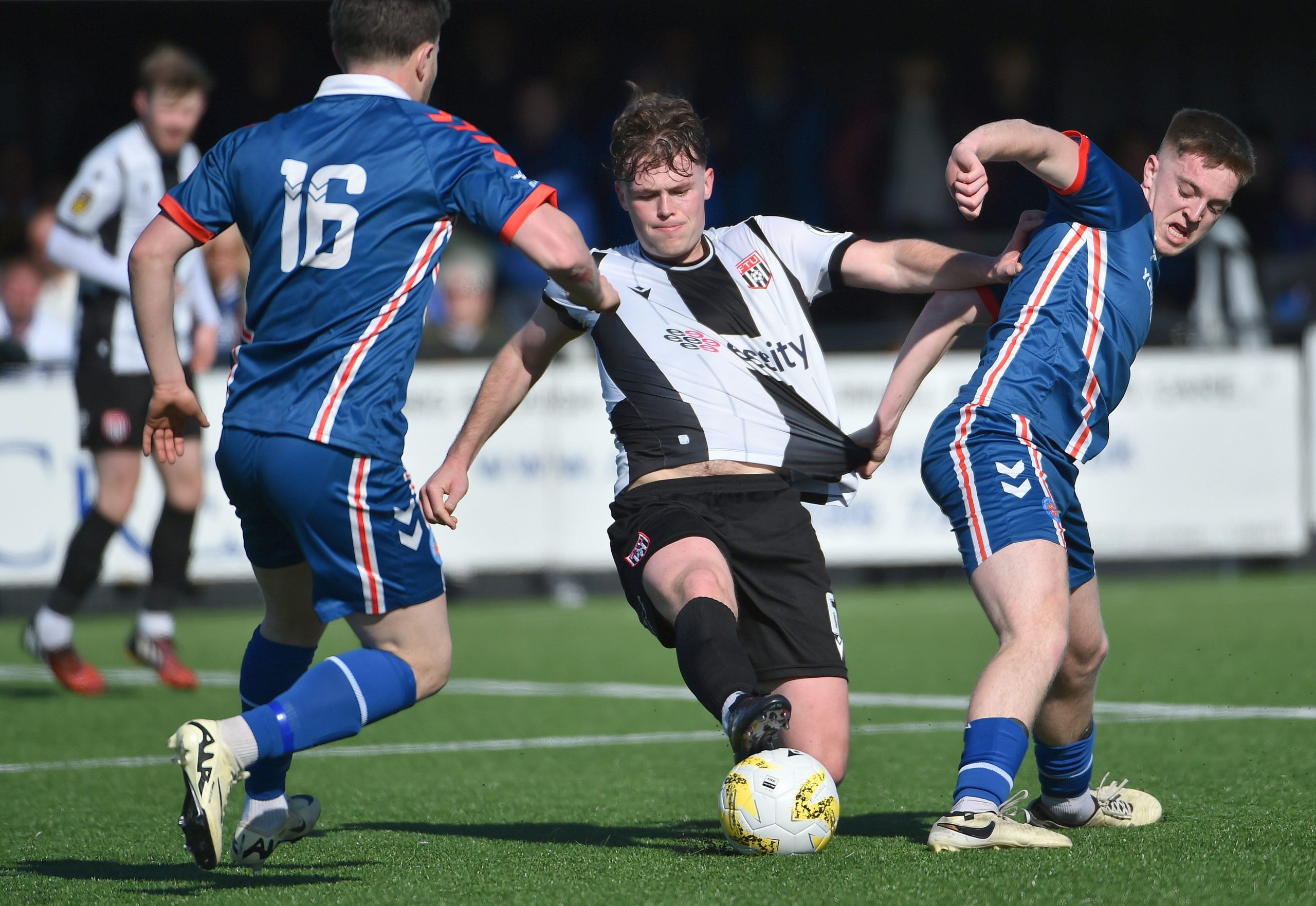 If a script had been written for this game from a Flint point of view, then it would surely have pretty much mirrored the actual events on the pitch, as the fluency of play from the team in black and white was a joy to behold. Instrumental to it all, was Ben Hughes in the centre of the park, who together with Jake Canavan set the tempo from the off.