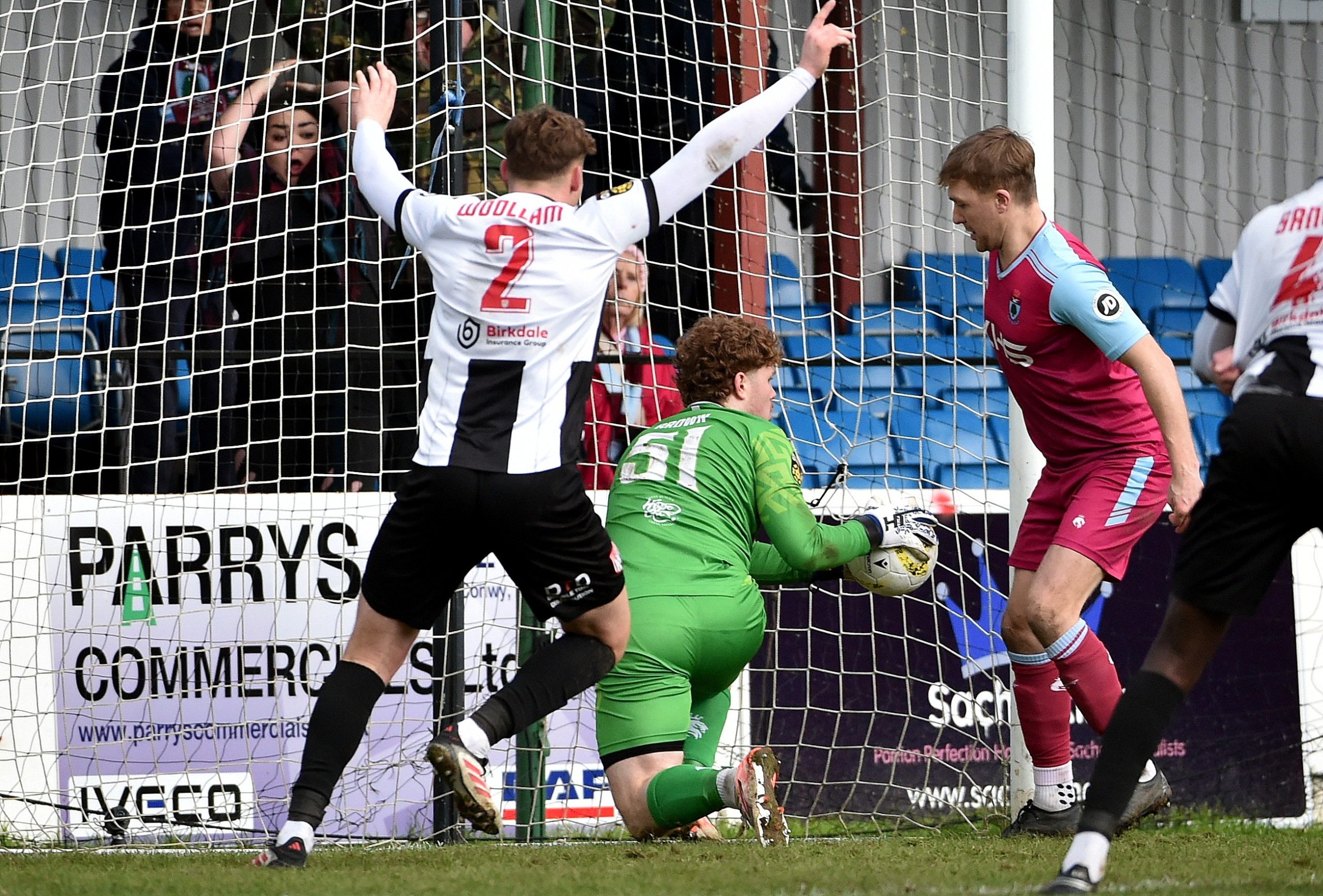 Stephenson was featuring heavily in the action in the final third, and following a nice exchange of passes between him and Mikey Burke, Burke in turn fired the ball into Canavan, but Bay keeper Alex Brown thwarted the TNS loanee with good strong hands to beat out his shot.