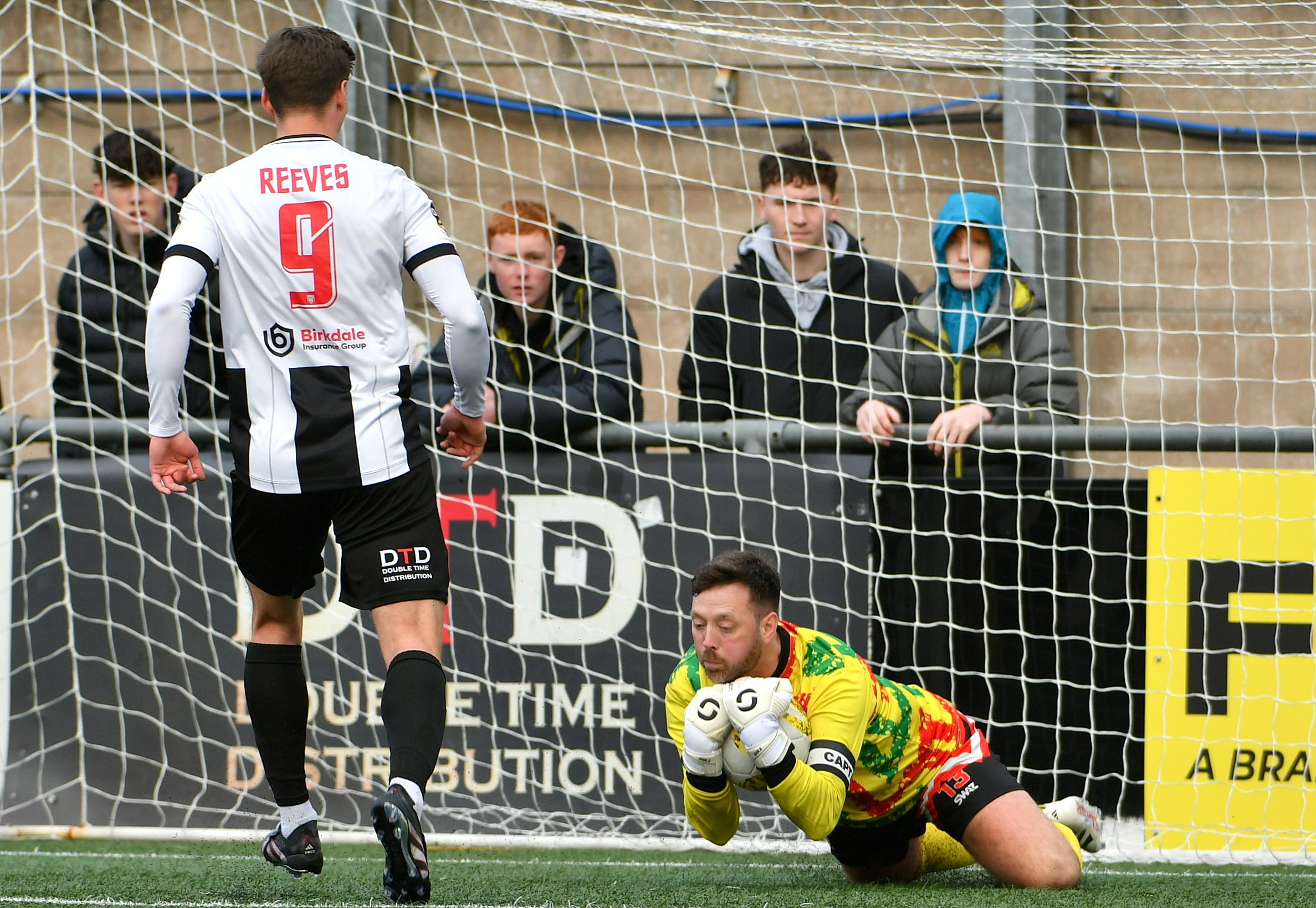 It was beginning to look a bit ominous for the visitors at this stage, but to their credit they didn’t buckle and eventually started to play their way back into the game. A long ball out of defence picked out Tom Hilditch who looked to add to his tally of 10 goals in this season’s competition, but he was thwarted by Jack Flint who had sprinted out to close down the angle, and spread his body well to block the shot.