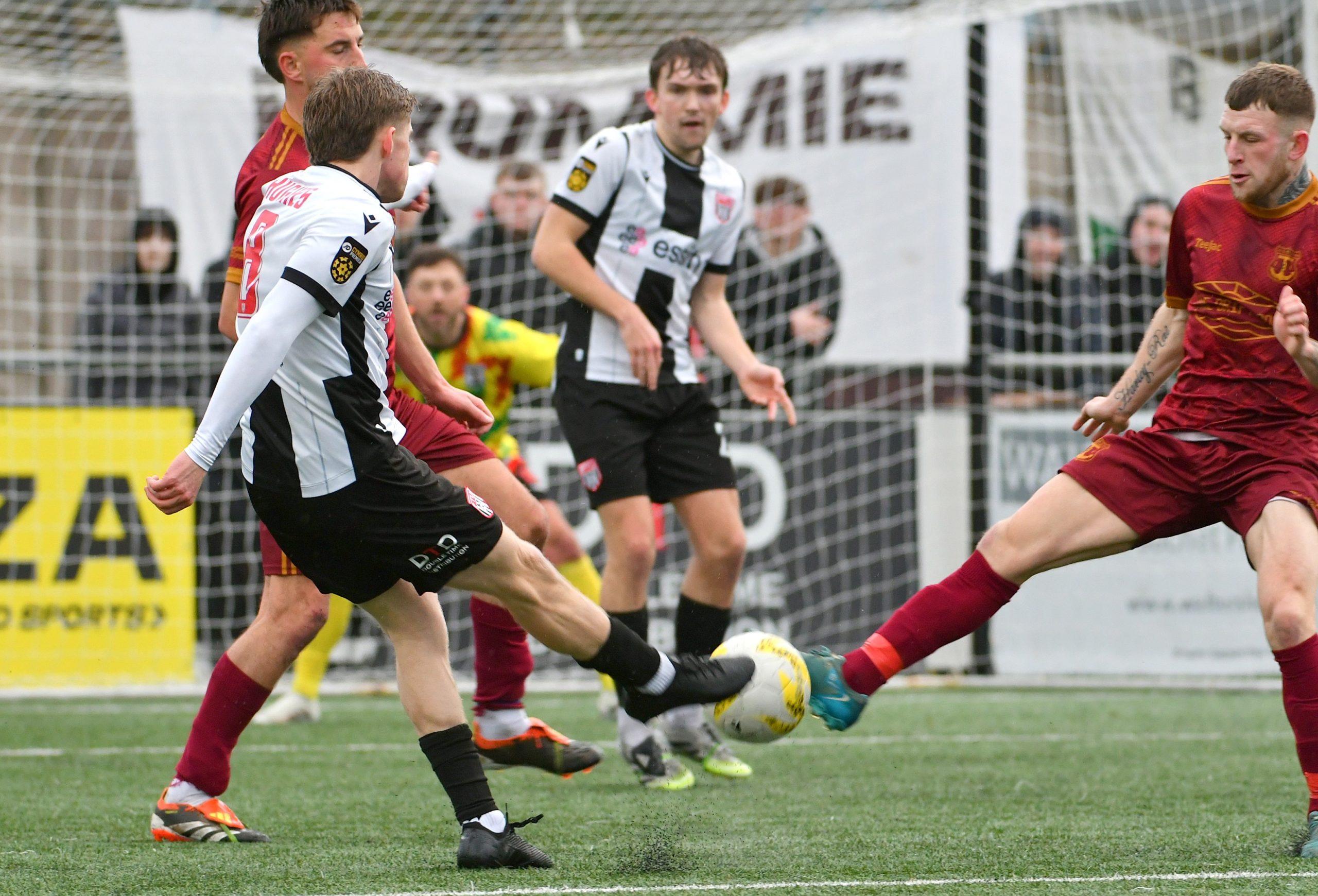 Bay responded through Liam Armstrong, who attempted a curling effort from 25 yards out, that went just wide of the top corner of Flint’s goal.
